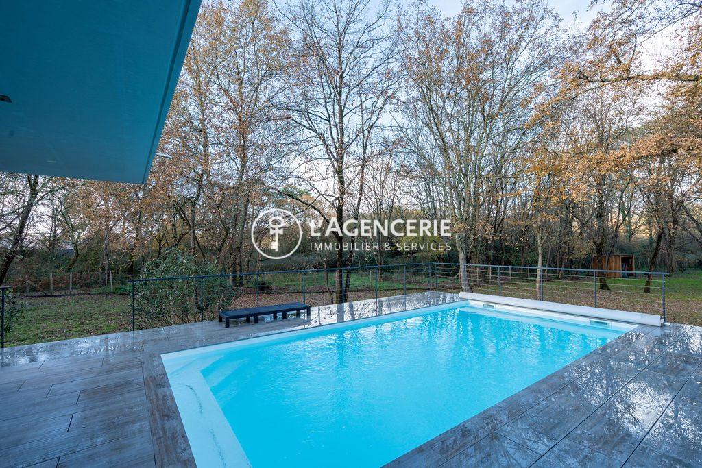 Située en lisière du bois du Déhès, classé en zone Natura 2000, cette maison contemporaine de 2017 offre près de 200 m² habitables, implantée sur une parcelle arborée de 2800 m².