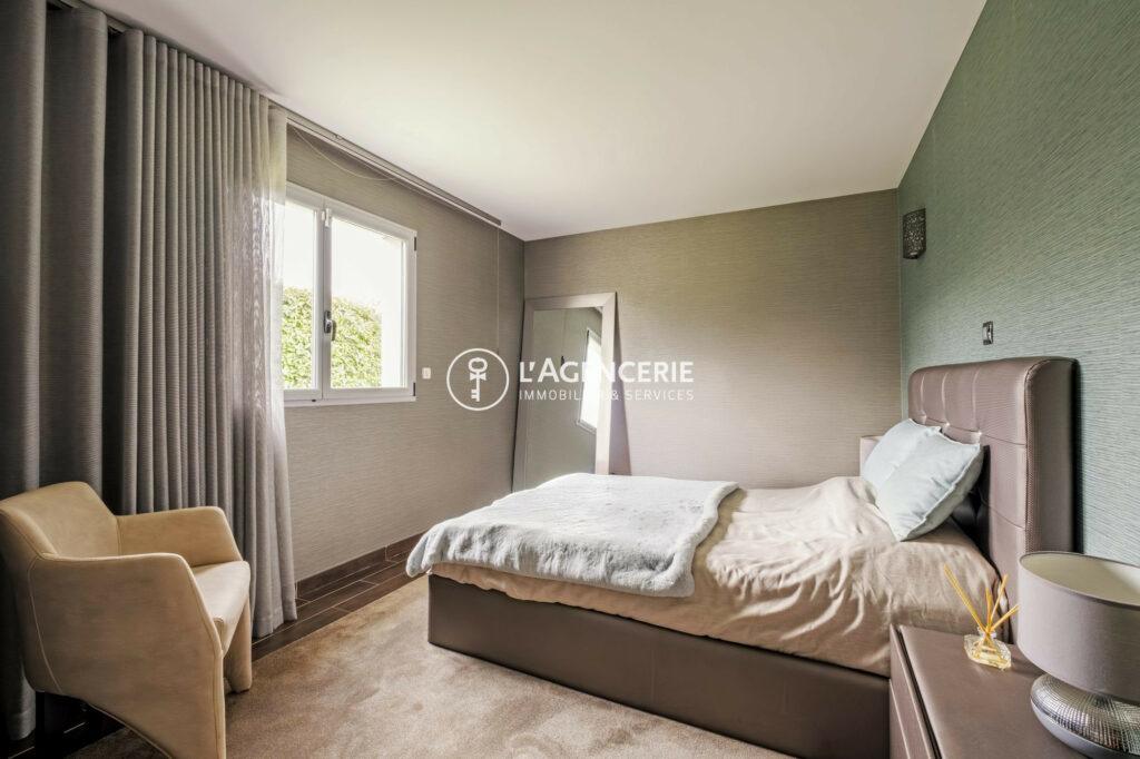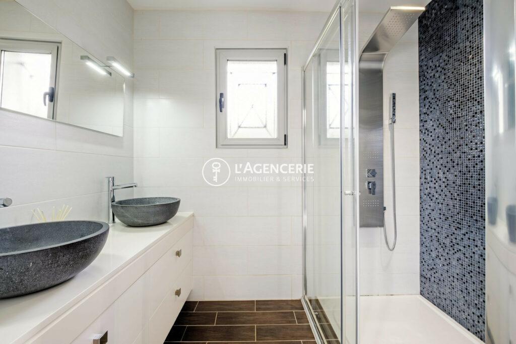 Elle se compose d’une vaste entrée avec rangements, d’une cuisine semi-ouverte sur un salon lumineux et spacieux orienté sur le jardin, de 4 chambres avec placards, dont une suite parentale avec dressing et salle d’eau privative, et enfin d’un grand garage d’environ 40m² avec pièce buanderie.