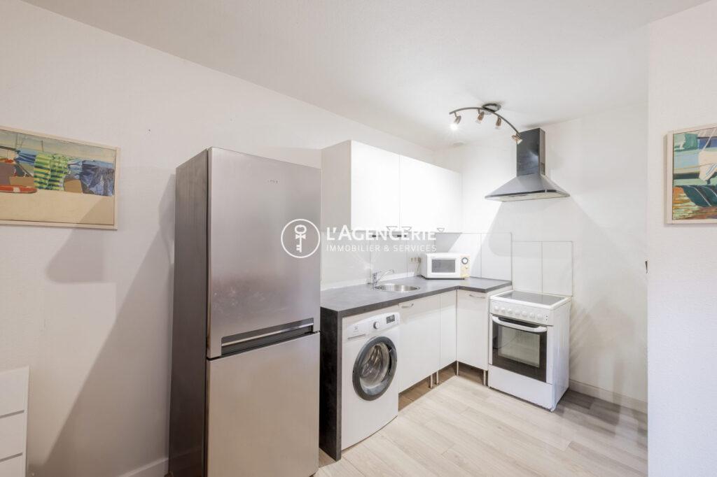 Quartier Saint-Michel à proximité des trams A et C et D (arrêt Porte de Bourgogne), dans un bel immeuble en pierre, un appartement meublé de type 1 comprenant un séjour avec coin nuit, ouvert sur la pièce de vie, un coin cuisine aménagé et équipé et une salle d’eau avec WC.